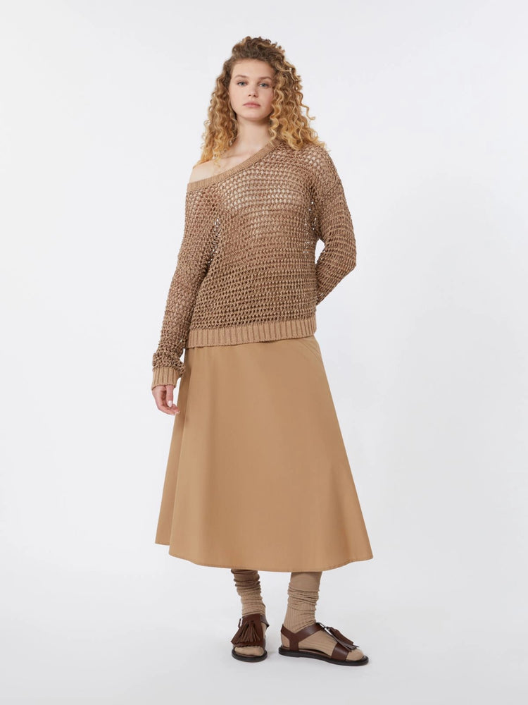 Flared midi skirt, featuring a seam motif on the front and back that gives movement to the garment.