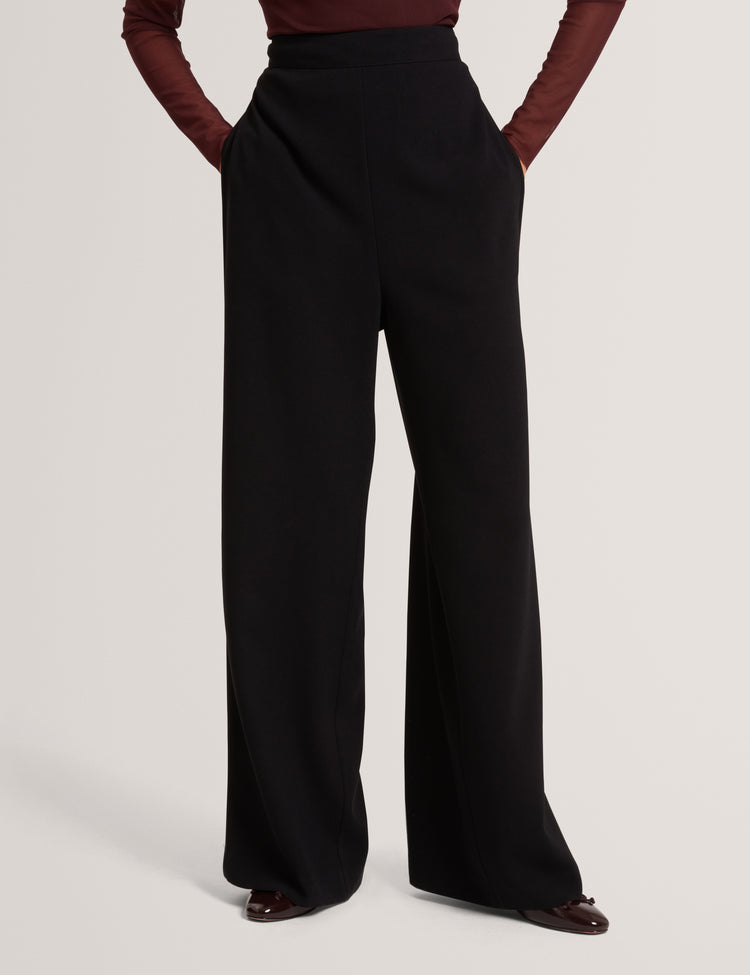Piping Detail Wide Leg Crepe Trouser