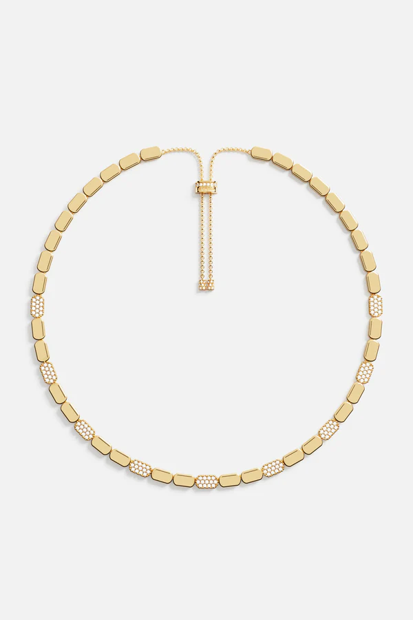| This necklace made with APM Alloy and 18k yellow gold plated is microset with white cubic zirconia. The APM Alloy is made of 95% recycled material. It is anti-tarnishing and Hypoallergenic. 2-year worldwide warranty Material: APM Alloy made of 95% recycled material and 18k yellow gold plated, white cubic zirconia, anti-tarnishing and Hypoallergenic All our products are handcrafted and microset by hand in our ateliers Color: Yellow gold Total chain length: Adjustable from 42 to 65 cm with sliding clasp |