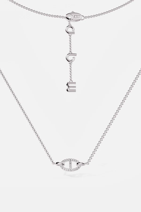 | This necklace is made with sterling silver and microset with white cubic zirconia. 2-year worldwide warranty Material: Sterling silver, white cubic zirconia All our products are handcrafted and microset by hand in our ateliers Color: Silver Total chain length: Adjustable from 41 to 45 cm Closure: Clasp it to your preferred length between the a, p or m letters |