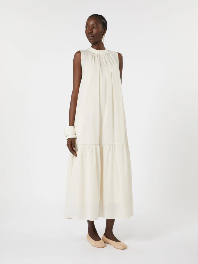 | Lightweight cotton-blend canvas meets fluid femininity in the YANG dress—sand-shaded, sleeveless, flared silhouette with hem flounce and keyhole tie at the neck—it’s comfort and style dancing together |